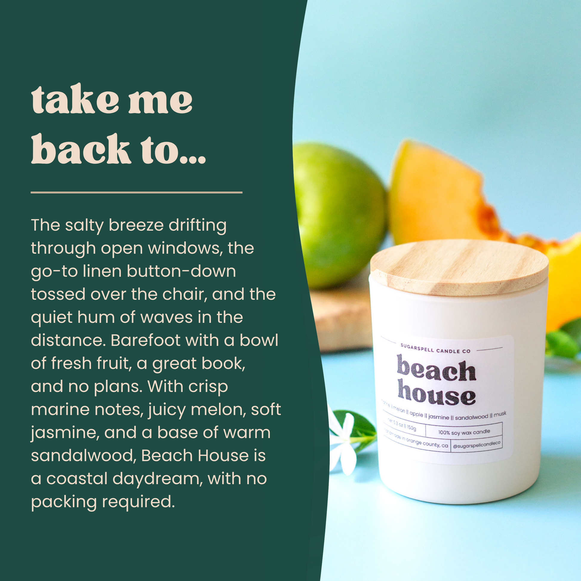 - Beach House: Marine, Apple, Melon, Jasmine, Lily of the Valley, Sandalwood, Musk