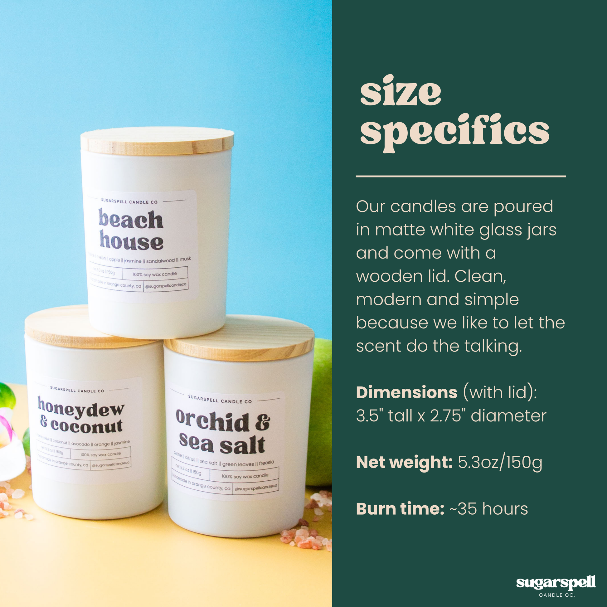 - Candle dimensions (with lid): 3.5" tall x 2.75" diameter